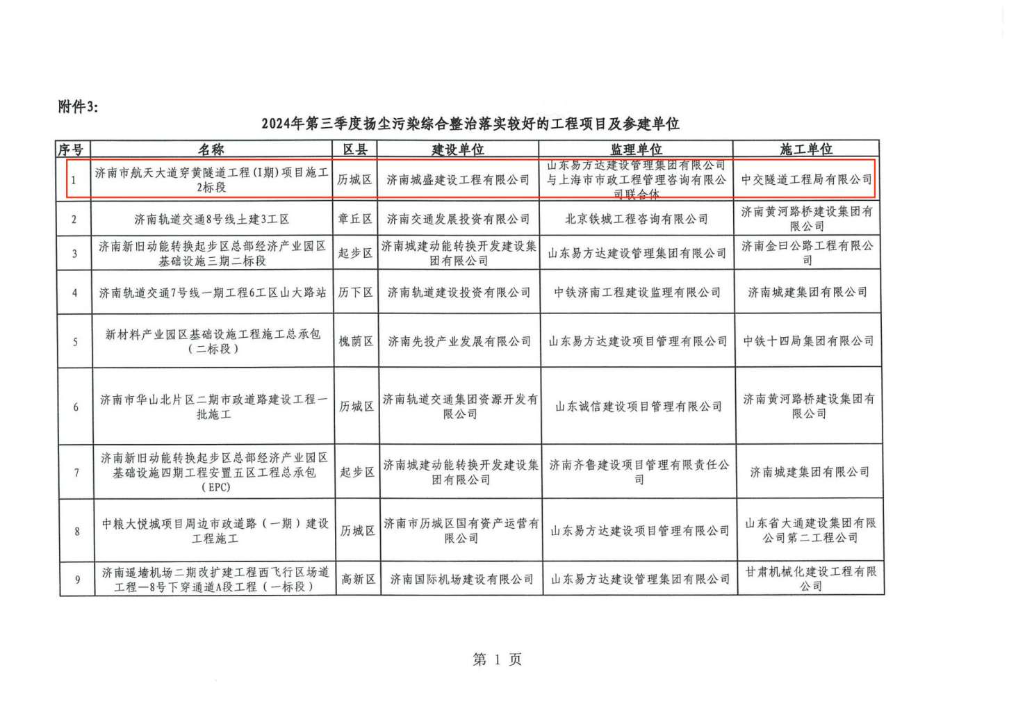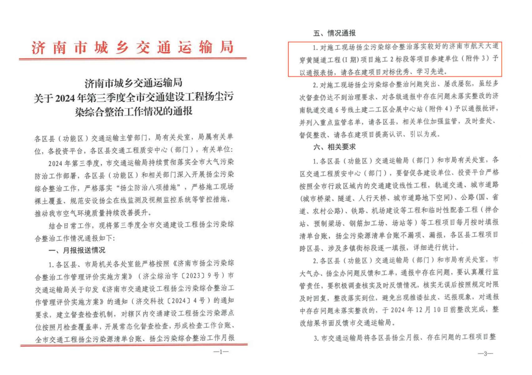 投资建设的济南市航天大道穿黄隧道工程(I期)项目施工2标段脱颖而出,被予以通报表扬,该标段由中交隧道工程局有限公司承建。