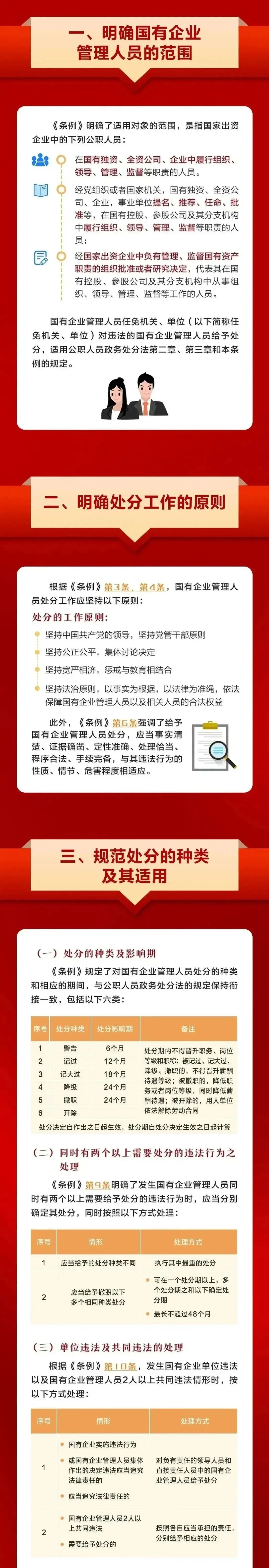 2024年4月26日,国务院第31次常务会议通过《国有企业管理人员处分条例》(以下简称《条例》),自2024年9月1日起施行。《条例》共7章52条,包括总则、处分的种类和适用、违法行为及其适用的处分、处分的程序、复核与申诉、法律责任、附则等。