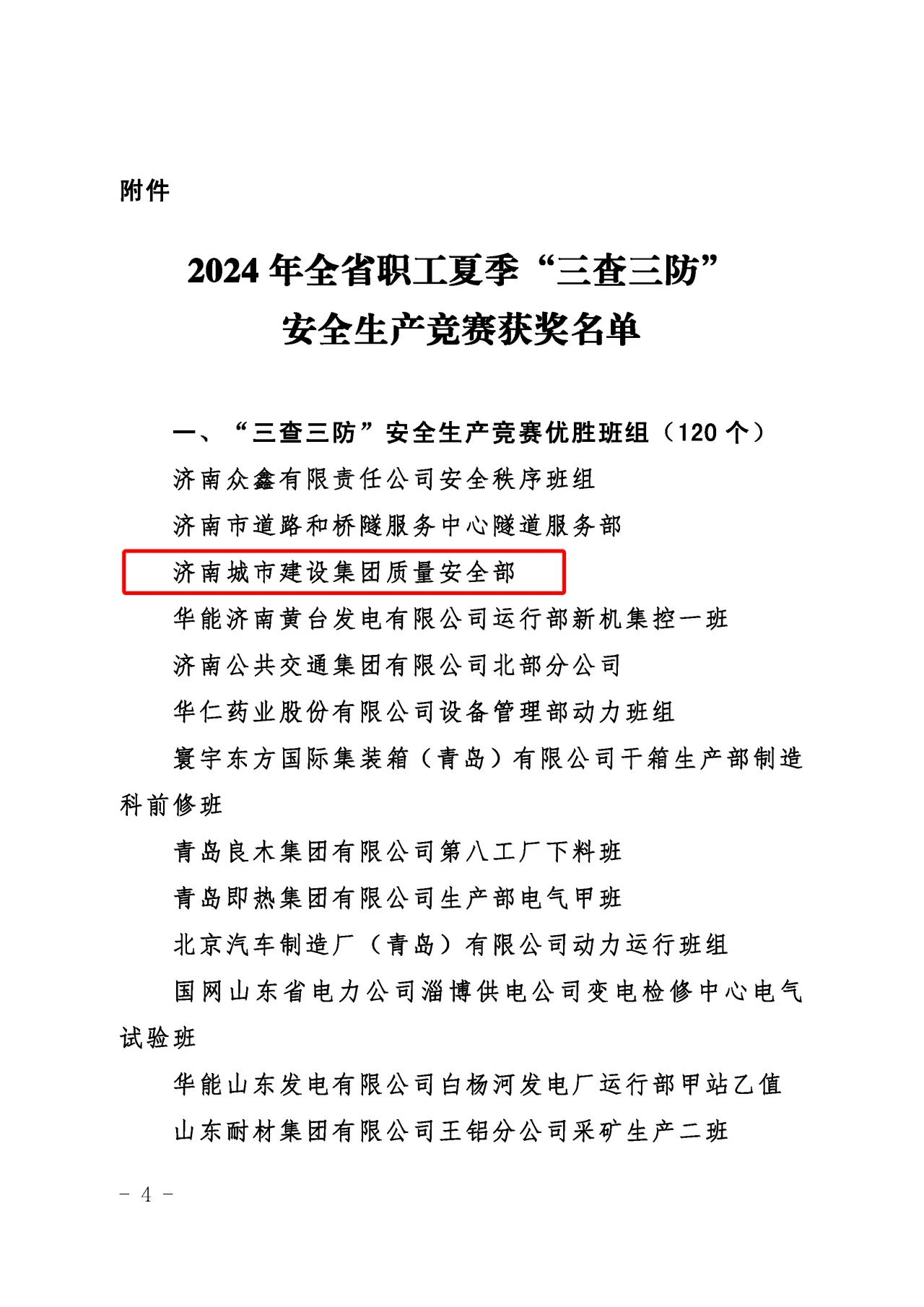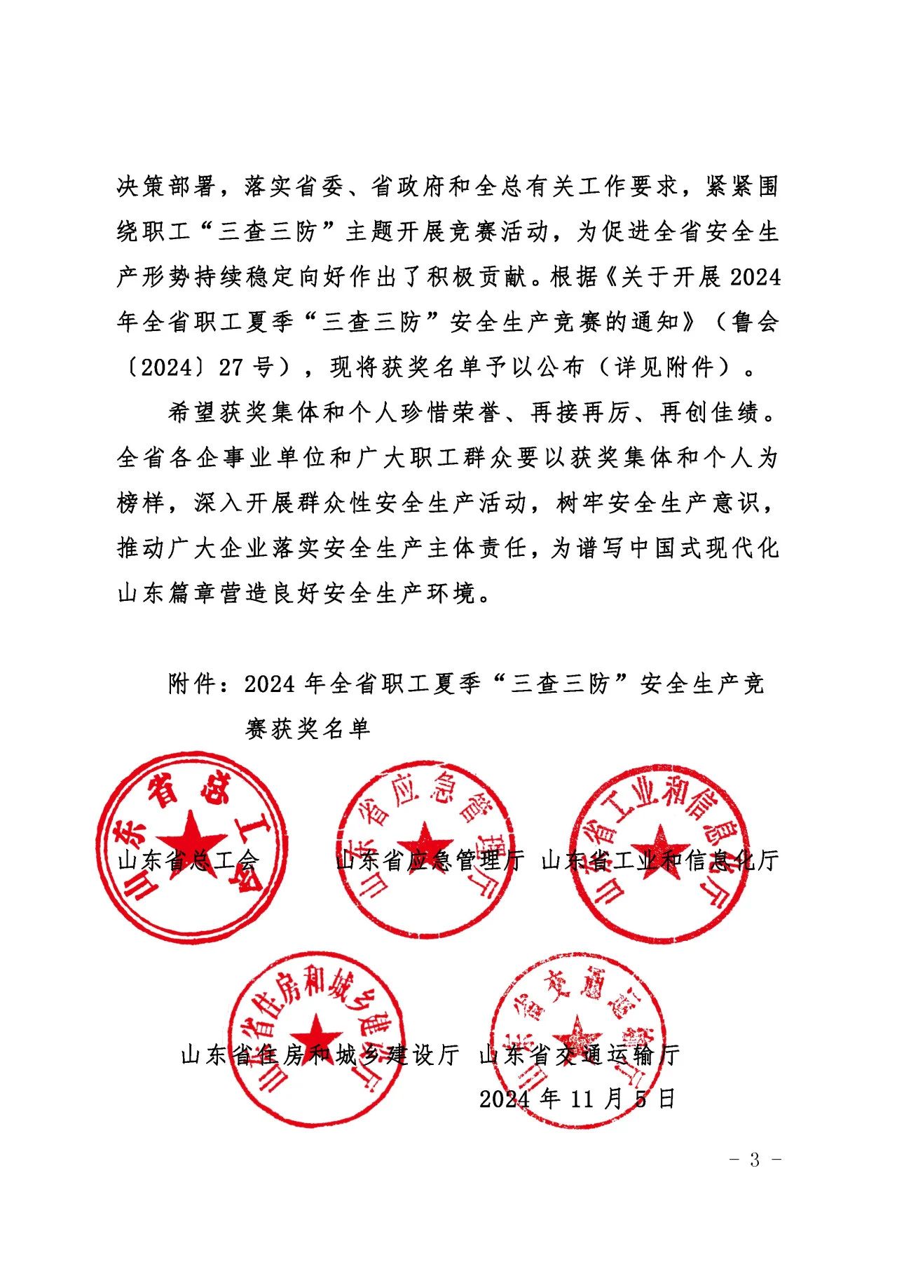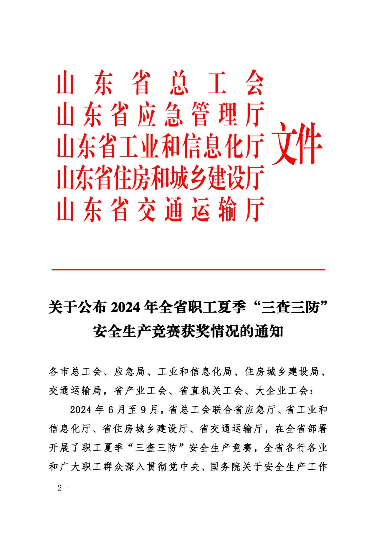 近日,山东省总工会、山东省应急管理厅、山东省工业和信息化厅、山东省住房和城乡建设厅、山东省交通运输厅联合发布了《关于公布2024年全省职工夏季“三查三防”安全生产竞赛获奖情况的通知》,济南城市成人看片