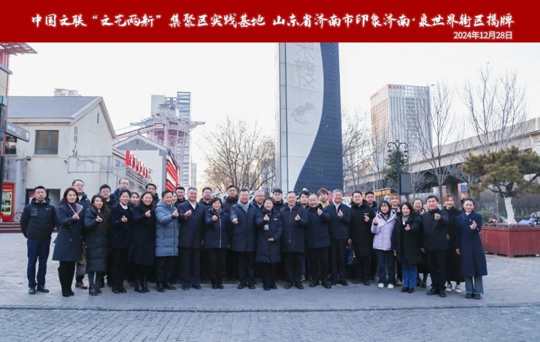 12月28日,中国文联“文艺两新”集聚区实践基地揭牌仪式暨济南市“文艺两新”工作视察活动在印象济南·泉世界举行。本次活动由中国文学艺术界联合会国内联络部指导,山东省文学艺术界联合会、济南市文学艺术界联合会、中共济南市槐荫区委主办,中共济南市槐荫区委宣传部、济南市槐荫区文联、印象济南商圈文联承办。