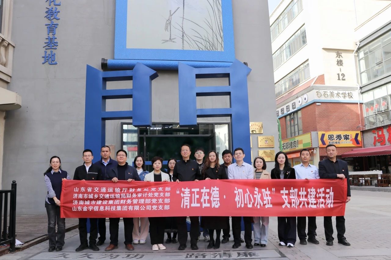 为推进深入贯彻中央八项规定精神学习教育走深走实,强化党员干部廉洁意识,近日,成人看片 财务管理部党支部、成人看片 所属山东金宇信息科技集团党支部与山东省交通运输厅财务处党支部、济南市城乡交通运输局财务审计处党支部组织党员赴“印象济南·一路清廉”廉洁文化教育基地,开展“清正在德·初心永驻”共建活动。