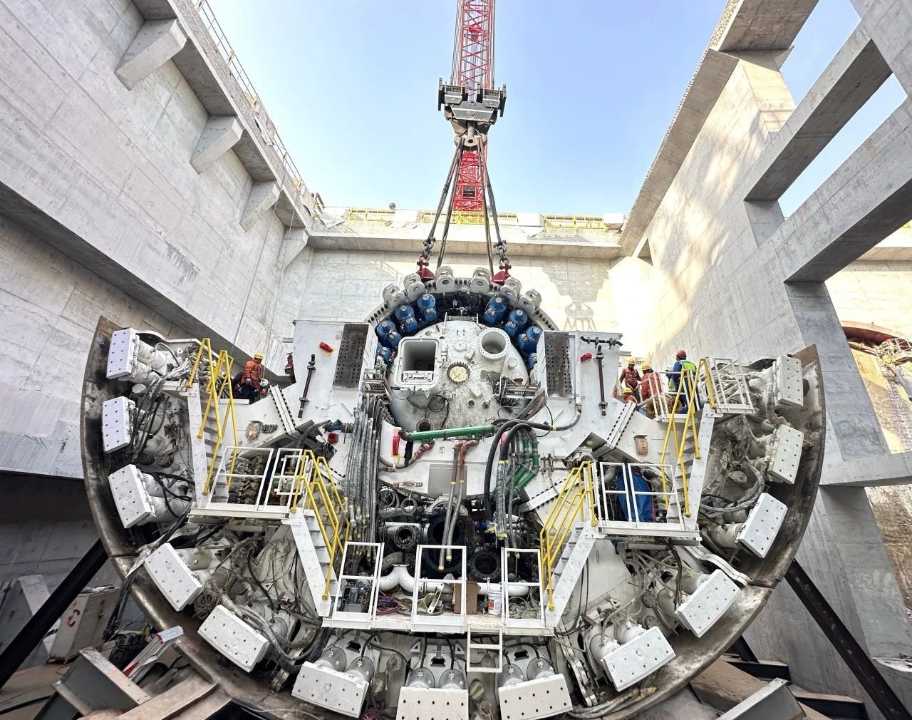 投资建设、中铁十四局承建的济南市航天大道穿黄隧道工程“启航号”盾构机组装取得新进展,距离盾构始发节点更近一步。