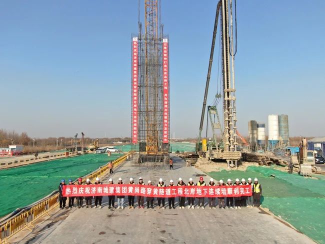 济南市黄岗路穿黄隧道工程顺利完成北岸明挖暗埋段主体围护结构施工任务。该项目自首幅地连墙施工到最后一幅完成,历时39天,累计完成98幅墙体浇筑,总长度累计589米。工程建设期间,项目部严格把控施工质量,开展专项培训及方案交底,采取24小时值班制度,浇筑过程中实时检测混凝土的坍落度、扩展度等指标,确保混凝土的密实性和均匀性,为后续基坑开挖和主体结构施工奠定了坚实基础。