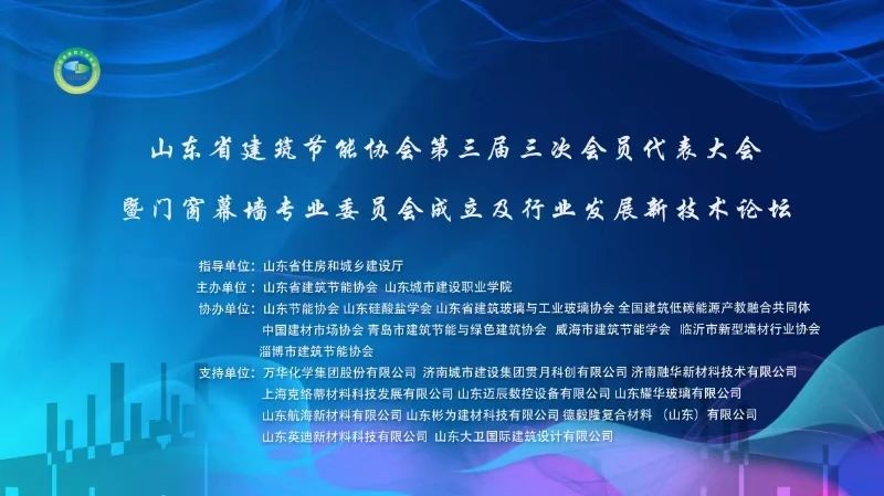近日,山东省建筑节能协会第三届三次会员代表大会暨门窗幕墙专业委员会成立及行业发展新技术论坛举行。