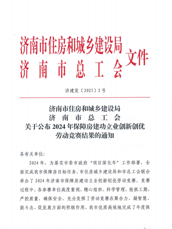 近日,济南市住建局、市总工会公布2024年保障房建功立业创新创优劳动竞赛结果的通知,成人看片